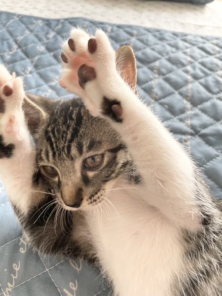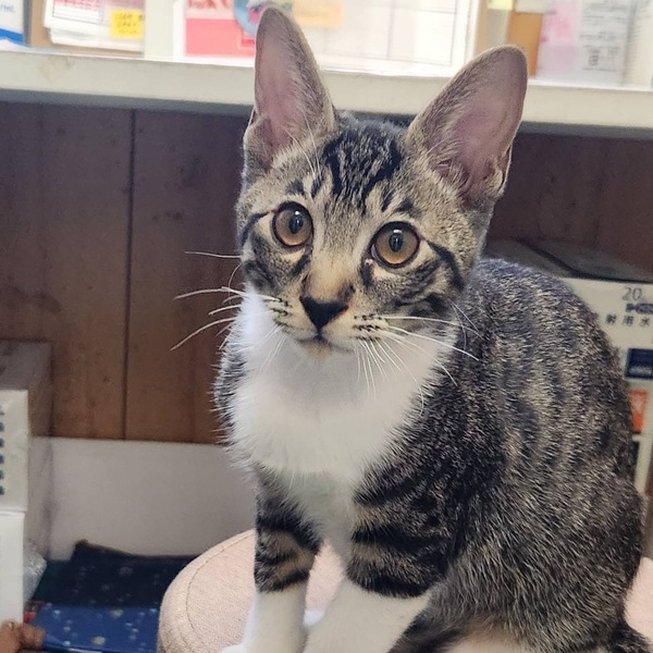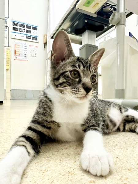 | 特徴(性格など) | ・アメショー柄が特徴的です。 ・保護時から一際大きく、しっかりした 体格です。今も月齢の割に大きいです。 ・性格は案外ビビりで人見知りですが、 すぐに馴れます! ・元気いっぱいです! |