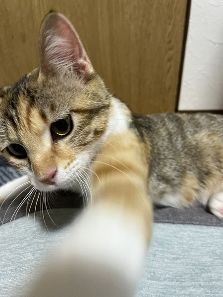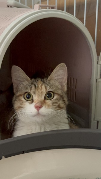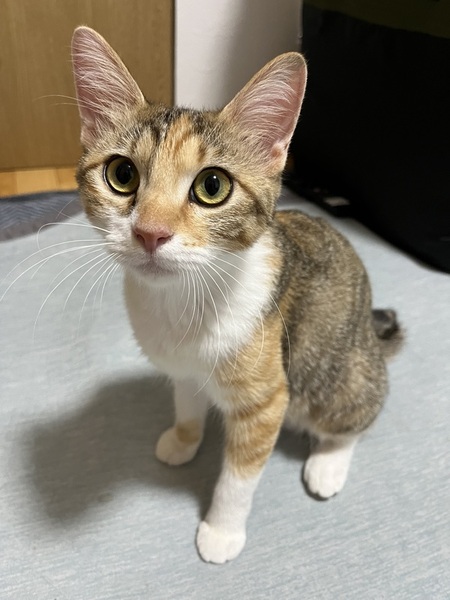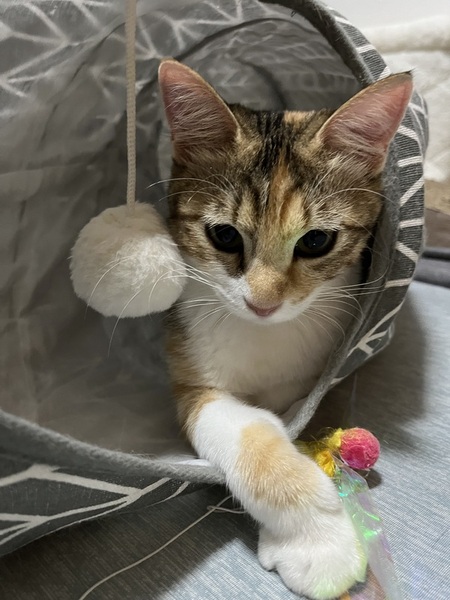 | 特徴(性格など) | 2.2キロ(保護時)の小さな三毛猫のななせちゃん、キリリとした表情が大人びて見えますがまだ幼く、おもちゃを追いかけて遊ぶのが大好きです。最近は私達にもたくさん甘えてくれるようになりました。人も猫も大好き、食欲旺盛天真爛漫な女の子です!酷暑のこの夏、暑さと飢えに耐え必死に頑張って生きてきてくれました。保護時はフラフラでした。 大切にずっと可愛がって下さるご家族を探しております。どうぞ宜しくお願い致します。 |