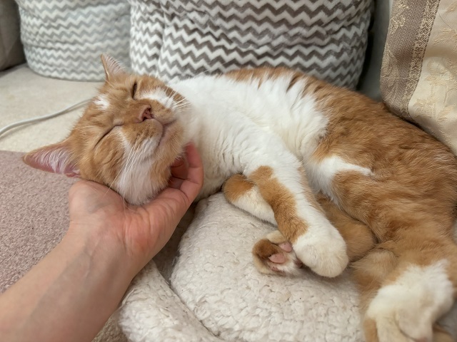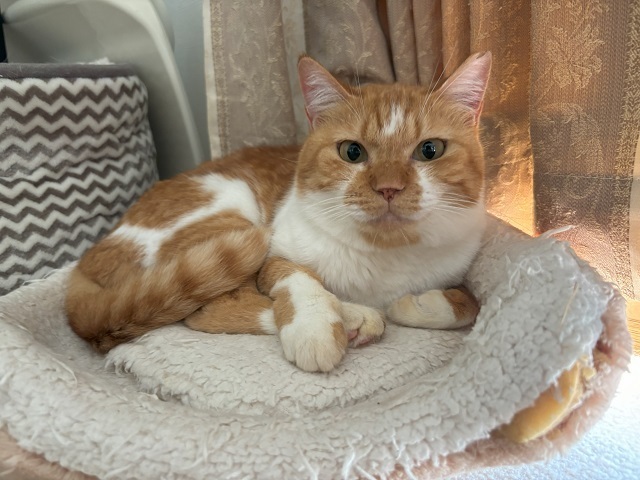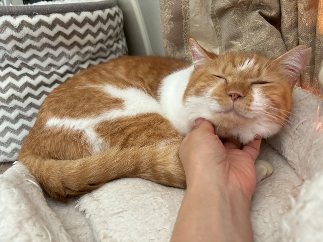 | 特徴(性格など) | ☆☆☆ご希望の方は、以下のアンケートフォームにご記入の上、送信してください☆☆☆ ねこ親希望アンケート→ http://chibawan.net/contactform_cat 【猫No】3847 【愛称】ひまわり 【性別】メス 【年齢】推定11歳(2013/7/1頃生) 【毛色】茶白 【体重】3.2kg 【状態】不妊手術済、ワクチン接種済(2024/7/11)、血液検査済(FIV: - 、FeLV:-)、駆虫済(ノミ・ダニ・回虫等)、マイクロチップ装着済 【預かり場所】千葉市 【日記】https://www.instagram.com/sakuranouchi/ 【経緯】千葉県動物愛護センター東葛飾支所より一時預かり 【性格】 とても温厚でマイペースなおっとりおばあにゃんです。人懐っこく撫でられるのが大好きで、撫でるとコロンと転がってモフモフのお腹をみせながら甘えますが、抱っこ等の体を保定するスキンシップは好みません。預かり宅では様々なタイプの犬猫と上手に付き合っているので、先住犬猫がいるご家庭でも馴染めると思います。人にも犬猫にも、自分からアプローチするのではなく「来るもの拒まず」のタイプで、雑な絡まれ方をしても怒ることなく受け止める包容力があるため、いつのまにかひまわりちゃんの傍に他の犬猫が寄り添っていることが多々あります。 シニアの年頃ですが、嗅覚が弱いことを除いては健康上の問題もないため、ひまわりちゃんの短くはないであろう余生をゆったり一緒に過ごして頂けるご家族を希望いたします。また、主にお世話をする方が60歳以上のご家庭からのご応募についても、ご相談ください(終生飼養が可能か、事前にご検討お願いします)。 【その他】 猫に合った生活スタイル、終生飼養、完全室内飼育、脱走防止対策、定期的なワクチン接種などの健康管理、定期的な近況報告をお約束いただけるご家族で、アンケートに快くお答え頂ける方からのお問い合わせをお待ちしております。お届けの範囲は、猫の負担を考慮して千葉市から車で90分程度の範囲を希望します。 【特記事項】 右の鼻腔が石灰化しており、左の粘膜にも一部損傷がみられるため、嗅覚が非常に弱いようです。それが原因かはわかりませんが、ドライフード(おやつを含む)を食べ物と認識しないので、ふやかしたドライフードとウェットフードを混ぜてペースト状にしたものを1日3回程度に分けて与えています。嗅覚は弱いものの、状態は安定しており、投薬等の治療は特段必要としていません。 |