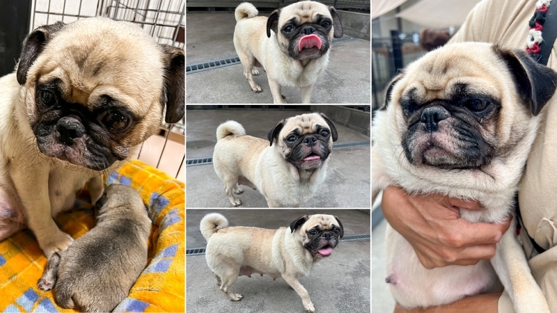 | 里親募集する理由 | ブリーダーさんのところの繁殖引退犬です。 とても優しくて可愛い子なので、里親さまのところで可愛がってもらえたらと思って、当団体での里親探しを決めました。 お鼻の下のおハゲちゃんは、ブゥちゃんが子煩悩すぎるあまり、赤ちゃんを一生懸命なめていたのでハゲてしまったとか! おハゲは今後少しずつ元に戻ってくると思われます、との言葉を動物病院の先生よりいただいておりますので、温かく見守ってください。 |