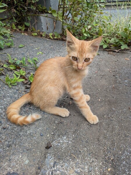 | 特徴(性格など) | 茶色と白のまだらな毛並みでかわいい子猫ちゃんです。野良猫ですが、保護してからとてもひとなつっこくてかわいいです。 | ||