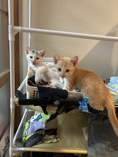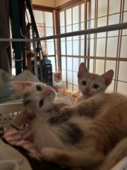 | その他(譲渡条件など) | ・どちらか1匹の譲渡も可能です。 ・ペット飼育可能な物件にお住いの方でお願いいたします。 ・対面してからのキャンセルは御遠慮ください。 ・猫が好きで責任もって生涯可愛がって下さる優しい方お願い致します。 |
