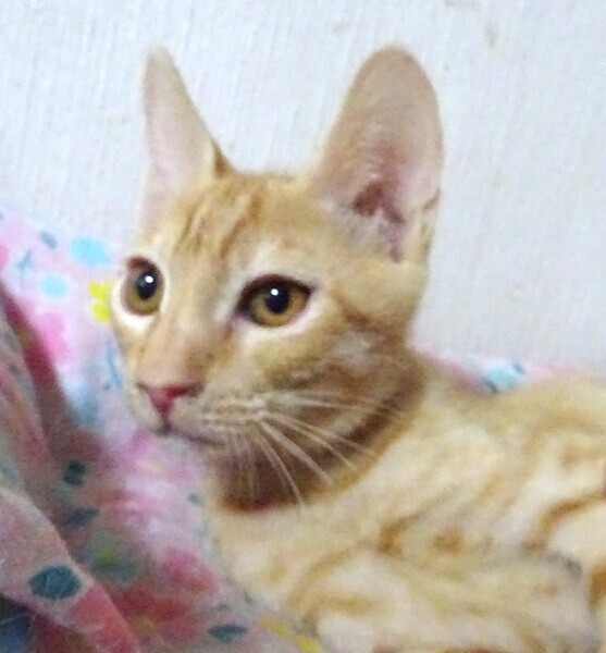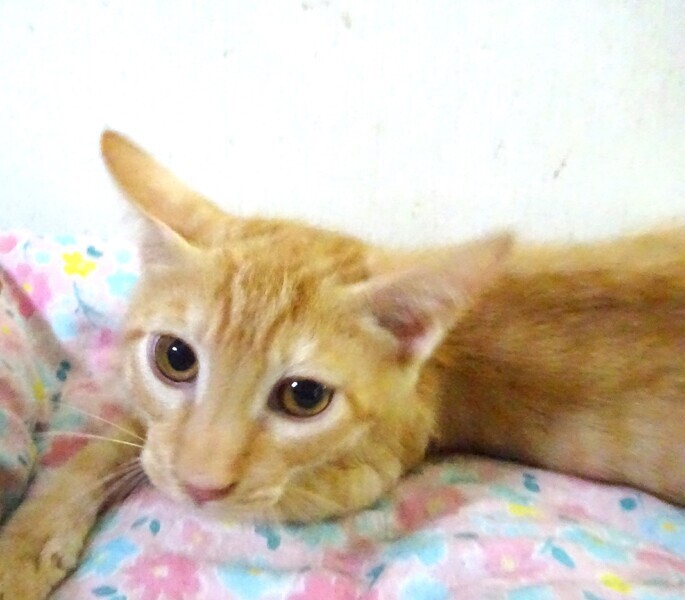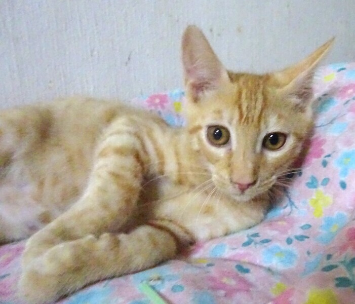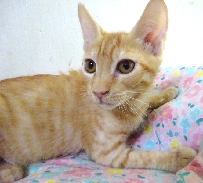 | 特徴(性格など) | 仮名: モナカくん、オス 毛色: 薄いチャトラ 性格: 保護時ははげしく威嚇をしていましたからビビりだと思います。 4兄弟のうち、体は一番大きいのに一番のビビりでした。 環境に慣れてきたら、少しづつ威嚇をやめました。 最近は威嚇なく抱っこ出来、爪切り、薬も大丈夫です。 じゃらしも好きです。 ご飯も最初はひきこもって、人がいなくなると食べていましたが、今は、持っていくと出てきて、皆と一緒に食べます。 催促も出来るようになりました。 環境がかわるとまた少し時間をかけゆっくりと馴れると思いますので、じっくり様子をみて見守ってくださるご家庭を希望しています。 お届けは千葉県内で、車で1時間圏内でお願いします。 検便済 駆虫済 3種混合ワクチン済 猫エイズ・白血病ウィルス検査は共に陰性です |