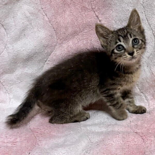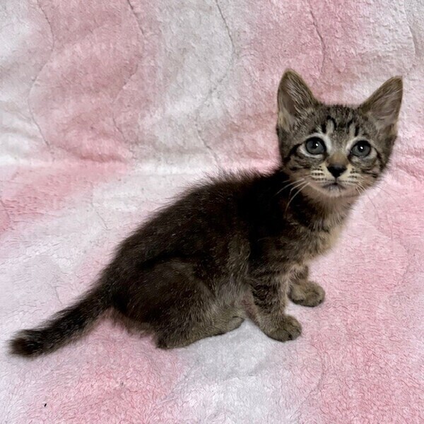 | 特徴(性格など) | 【仮名】もずくちゃん 【性格】いわゆるキジトラなもずくちゃん♪ おっきなおメメの可愛いコなんです! お外時代から人にご飯をもらってたので 人馴れ具合は上々です♪ 現在同世代部屋にてイロイロ学習中! おもちゃの食いつきはグッドです♪ はやりのもずく食のようにこのコと遊べば ダイエット効果抜群カモです(笑) まだまだチビッコなので お留守番は少なめの方限定です! ぜひ兄妹か同世代にゃんこと 一緒のお迎えをお願い致します♪ ※1ピキ譲渡不可 |