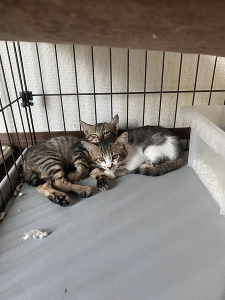| 特徴(性格など) | 8/27更新 胸元が白い男の子の里親様決定しました! 引き続き、オス1匹とメス1匹の里親様募集です。 オス2匹 メス1匹 初めての人には人見知りしますが、すぐに慣れると思います。 飼っている猫たちとの関係は良好です。 健康上問題無いと思います。 |