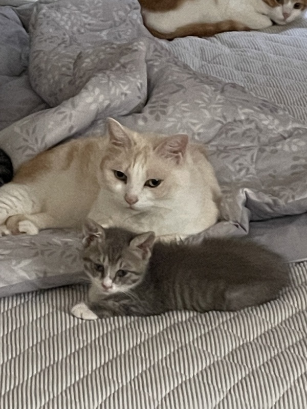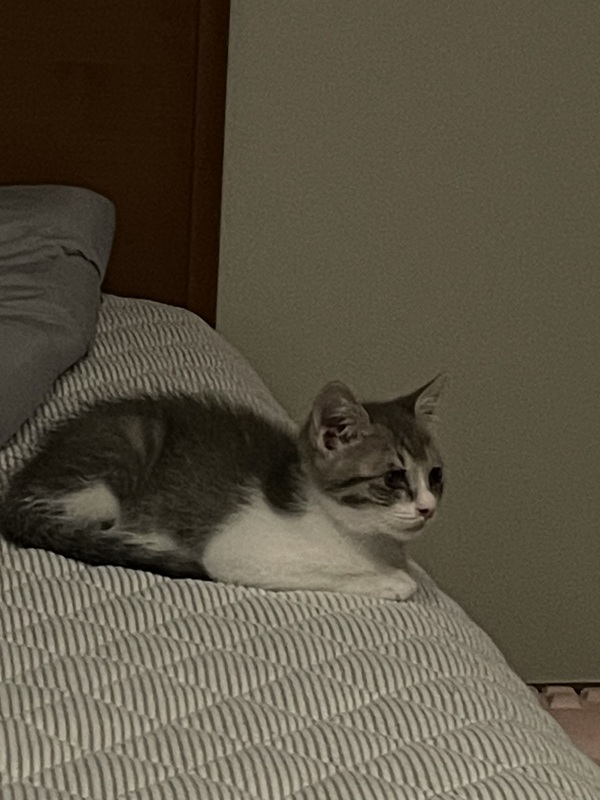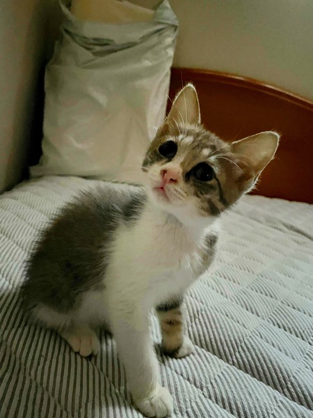 | 特徴(性格など) | 1匹でウロウロしているところを保護しました、痩せて目が塞がっていてひどい状態でしたが通院、看病の結果元気いっぱいのかわいいちゃんになりました ホワホワのグレーと白の毛が素敵な猫くんです 普段は先住猫たちと兄弟のように暮らしています うちには犬もいて犬とも仲良しです とても好奇心が強くお利口な猫くんです 人懐っこいところもあり自分からやってきて膝の上で寝ています 問題行動は見当たらずとにかく可愛いお利口な猫です すぐに家族の一員になること間違いなし! よろしくお願いします |