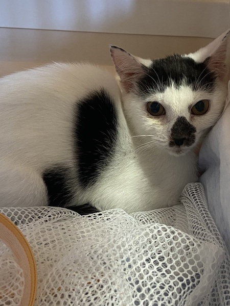 | 特徴(性格など) | 可愛い前髪ぱっつんの愛嬌ある女の子です お鼻の模様もチャームポイントかな ご飯もよく食べて、元気に遊んでいます。 とても人懐っこい猫ちゃんです。 |