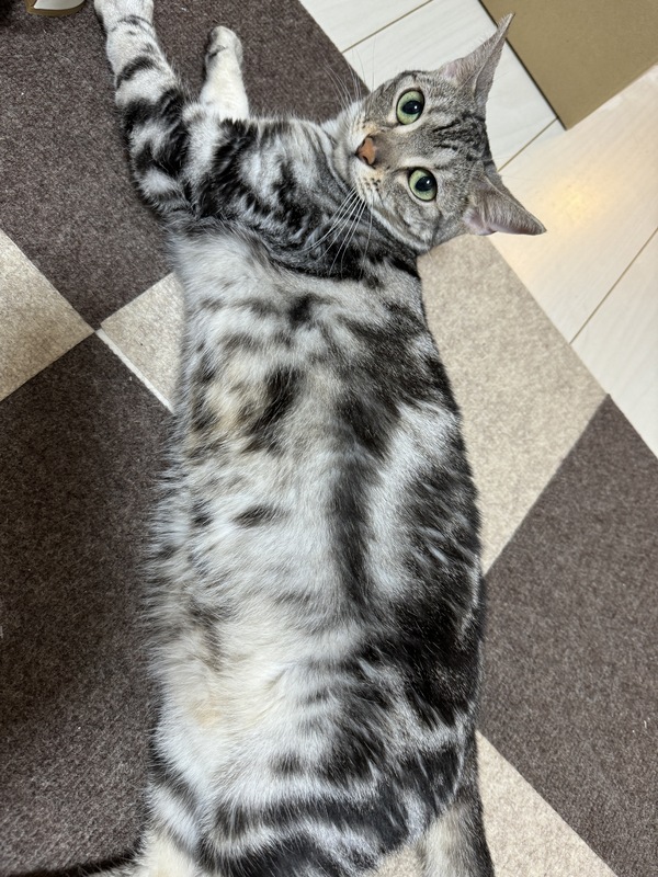 | 特徴(性格など) | アメショとベンガールのミックス。 頭よくてとても元気なことです。 |
