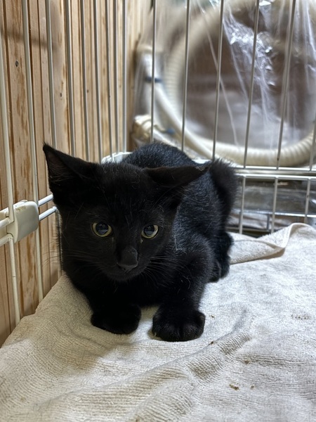 | 特徴(性格など) | 生後約三ヶ月(誕生日は大体です) 黒猫 男の子 ・名前を呼ぶとお返事します ・なでなで、抱っこOK ・甘えん坊 手術は4ヶ月〜5ヶ月あたりに行います(トライアル期間を設けますので期間が被りましたら、その最中に手術になります) |
