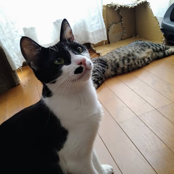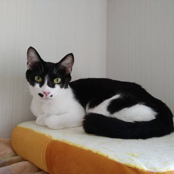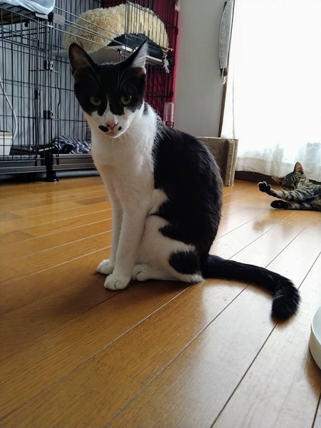| 特徴(性格など) | 人も猫も大好きな、好奇心旺盛なキラキラお目目の女の子です! お膝が大好きで、甘えたい時はストレートにゴロゴロしてくれるので、虜になっちゃいます♡ ごはんは好き嫌いなくなんでも良くきれいに食べてくれます。 白黒ちゃんのお鼻の左右のポッチ模様が特徴で、キョトンとした表情がたまらなく可愛い子です! |