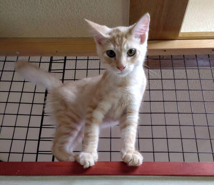 | 特徴(性格など) | ダイリュート遺伝子(毛色が薄く出る遺伝子)を持って生まれた クリームカラーの美しい毛並み♪ キラッキラのおおきなおめめ! どこからどう見てもミラクルイケメンボーイな「きなこ」くんは 生後5か月ほどになる 元気いっぱいで甘えんぼなおとこのこ♡ 人間のことが大好きで、抱っこすると大音量でゴロゴロ言ってくれます♡ かわいすぎ・・・至福のひと時ですよね♪ 健康で元気いっぱいなので、猫じゃらしで遊ぶのも大好き! 兄妹のしま三毛女子「みたらし」ちゃんとすごーく仲良しでいつも一緒にいますので 2匹一緒のお迎え大歓迎! ※みたらしちゃん⇒画像3・4枚目 (※こちらのページはきなこくんのみのお申込みとなります。 2匹一緒にお迎えご希望の方がいらっしゃる場合、その方を優先させていただく場合がございます) 猫さんのことが大好きな猫さん(笑)なので 先住猫さんがいるおうちも大歓迎です! きなこ&みたらしペアか、先住猫さんがいらっしゃるおうちなど だれかしら一緒に遊べる猫さんがいる環境がよいかなと思います^^ 可愛くて元気いっぱいのミルキーカラーのパーフェクトボーイ♪ きなこくんに素敵なご縁がありますように^^ マッチング; ◎ご家族世帯 ◎単身ご世帯 ◎大人世帯 ○お留守番 ◎猫さんとベタベタしたい人 ▲猫さんとある程度の距離が必要な人 ◎猫飼い初めてさん ◎猫ベテランさん ▲猫以外の先住動物がいるご家庭 ◎多頭飼育(この子たち以外) *** 健康状態 *** 良好です!健康で元気いっぱい! ●3種ワクチン2回接種済み(本年度分完了) ●ノミダニ駆除済み ●お腹の虫の駆虫済み ●ウイルス検査済み 猫エイズ( ー ) 猫白血病( ー ) ●爪切り済み ●お耳掃除済み ※手術適齢のため、9/19に去勢手術予定です。 医療費のご負担金は、去勢手術費用を含んだものです。 |
