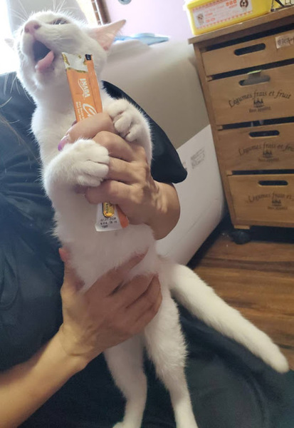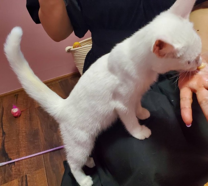 | 特徴(性格など) | 甘えん坊で活発な女の子です。 人も猫も大好きで、フレンドリーです。 大人しい一面もありますが、チュールを見ると元気過ぎる位元気で可愛いです! 他の猫とも仲良く過ごしているので、多頭飼いも可能です。 |