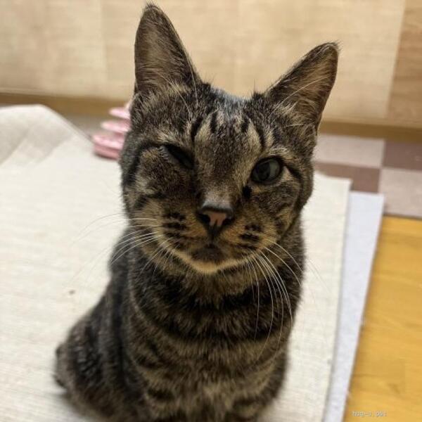 | 特徴(性格など) | ◆ダブフォーくん スリスリしてくる人馴れ男子 ○石川県内の被災地にて保護されました。 ○推定5歳以上(2024年8月時点)のキジトラの男の子です。 ○しっぽは鍵しっぽです。 ○能登半島地震後、孤立集落に取り残されていた子です。お外で生活していたところを保護しました。 ○人馴れしているスリゴロ君です。 ○抱っこやお膝はまだですが、甘えん坊でスリスリしてきてくれます。 ○撫でて欲しかったり、何かを要求する時には口や手が出ます。 ○甘噛みが強い傾向にあるため、小さいお子さんがいるご家庭は不向きです。 ○また、猫風邪の後遺症で右目の瞬膜が癒着してしまっており、右目が開きにくいですが、生活に支障はありません。 ○毛が柔らかくフワフワです。気になる方は、ぜひ一度預かり家に撫でに来てあげてください。 ○猫エイズ陽性(キャリア)ですが、現時点では発症しておらず、健康な猫と変わりません。元気に過ごしています。 ★ワクチン済み、不妊手術済み。 ★猫エイズ陽性、猫白血病陰性。 ★猫風邪の後遺症で右目の瞬膜が癒着してしまっており、右目が開きにくいです。 ☆『猫エイズウイルス』陽性のネコは敬遠されることがたびたび。でも、本当はそんなに怖くない病気です。猫エイズウイルス陽性の子もハッピーに暮らせます。 ☆単身のかたはご相談ください。 ○YouTubeにも動画をあげています。こちらもご覧下さい。 「ダブフォー」その1 https://youtu.be/cMCZdX9mac4 「ダブフォー」その2 https://youtube.com/shorts/D3TTAEVj4- ★★お見合いを設定することも可能です。まずはお申込みください★★ |