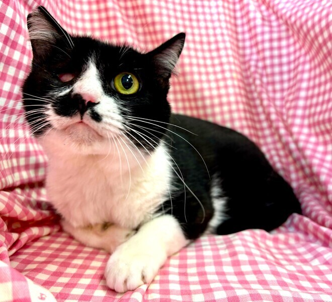 | 特徴(性格など) | 【仮名】五郎くん 【性格】イケメンハチワレの五郎くん♪ 片目が収縮して独眼竜政宗的ですが 普段の生活には全く支障がないのでご安心を♪ 人間大好きなスリゴロくんです。 美味しい物くれる人はもっと好き!! まあるいオメメがキラキラになります(笑) 何気に表情豊かな五郎くんなので 一緒に過ごすと絶対楽しいですョ♪ ※1ピキ譲渡可 |