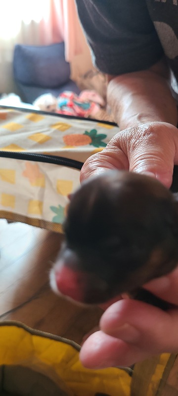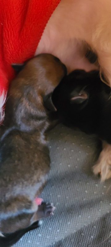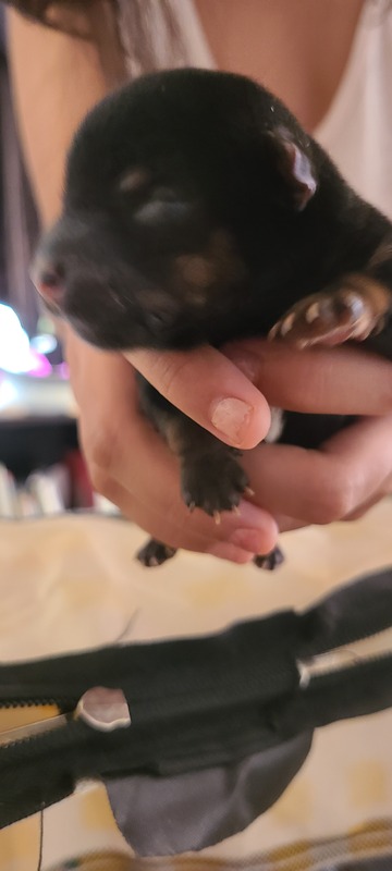 | 特徴(性格など) | 31に産まれたばかりの子犬です。 色は黒と多分茶色っぽい感じの子です。マルキーとヨーキーのMIXです。 |