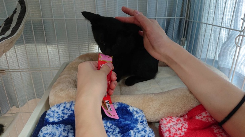 | 特徴(性格など) | <初期医療> エイズウイルス検査:陰性 白血病ウイルス検査:陰性 ワクチン接種:済み ノミ・ダニ駆除薬:済み 糞便検査:済み 推定3ヶ月の黒猫の子猫です。まだ保護したばかりですが、とても甘えん坊で可愛いです。一緒に保護している兄弟の『ノア(キジ白)』と仲良しなので、ふたりでお迎えしていただけたら嬉しいです。よく食べて、よく遊んで、とても元気です。お留守番はできますが、兄弟と2匹一緒か先住猫ちゃんのいるお家を希望します。 |