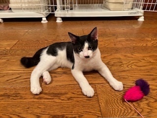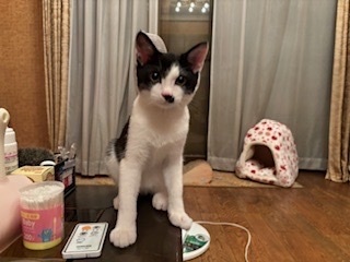 | 特徴(性格など) | <初期医療> エイズウイルス検査:陰性 白血病ウイルス検査:陰性 ワクチン接種:済み ノミ・ダニ駆除薬:済み 糞便検査:済み 推定4ヶ月の白黒のイケメン男の子です。人も猫も大好きの甘えん坊です。お顔の髭の模様がチャームポイントで、性格も可愛いです。お留守番もできますが先住猫ちゃんのいるおうちや初心者様にもオススメです。 |