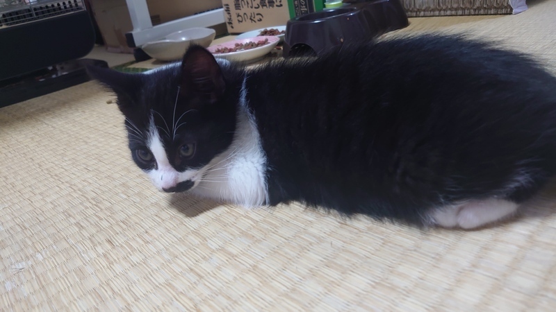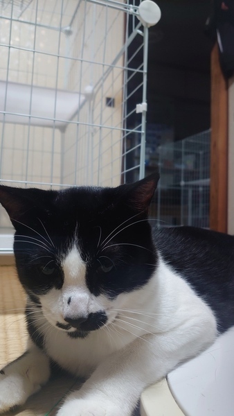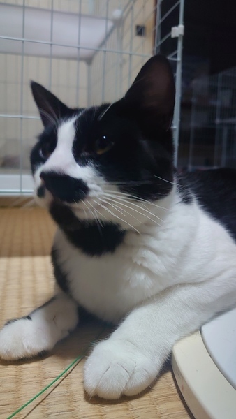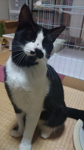 | 特徴(性格など) | ●色は白黒のハチワレです。 ●四つ子の内の一匹で、顔の真ん中に黒い模様がありとても個性的なお顔です 。 ●性格は兄弟の中でもやんちゃで、おもちゃで遊んだり、兄弟間でじゃれ合うのが好きです。走り回ったり、家の中を探検出来るようになってからは色んな所で遊んでいるのを見かけます。また人懐っこい所は兄弟共通です。 ●ウエット、ドライどちらも食べれます。 |