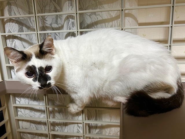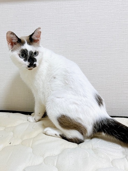 | 特徴(性格など) | ☆☆☆ご希望の方は、以下のアンケートフォームにご記入の上、送信してください☆☆☆ ねこ親希望アンケート→ http://chibawan.net/contactform_cat 【猫No】3855 【愛称】 汐(うしお) 【性別】メス 【年齢】10才(2014年5月頃生) 【毛色】白黒チョコレート 【体重】3.3kg(24.9.2現在) 【状態】不妊手術済、ワクチン接種済(24/5/23)、血液(ウイルス)検査(エイズ−、白血病−)、マイクロチップ装着済、ノミダニ駆除済、検便駆虫済、トイレ躾済 【預かり場所】千葉県我孫子市 【日記】 http://instagram.com/heiwa04 (インスタグラム) 【経緯】横浜市動物愛護センターより引き出し 【性格】 とても穏やかで大人しい女の子です。 場所に慣れるのは時間がかかりますが、人に撫でられることは大好きです。手を差し出すとすぐにスリスリして喜んでくれます。 預かり当初はほとんど動かずに1日を過ごしていましたが、徐々に人間の側に自ら寄るようにもなり、時間と愛情をかければ更に甘えてくれるのではないかと思っています。 食に関しては選り好みがありますので、現在色々なフードを試しています。好きなフードはよく食べます。 他の猫に対してはあまり興味がなく、威嚇や自分から近づいたりはしません。 シニア期、そして元来の穏やかな性格から静かな環境を好みますので、なるべく大人だけの落ち着いたご家庭を希望しています。 スキンシップを取りつつ適度な距離感で過ごしたい方にはピッタリな子です。 【その他】 愛情いっぱいの終生飼養、ネコにあった生活スタイル、 完全室内飼育、 定期的なワクチン接種等の健康管理、脱走対策の徹底、アンケートに快くお答えしていただける方からのお問い合わせをお待ちしております。 |