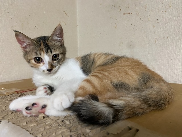 | 特徴(性格など) | ☆☆☆ご希望の方は、以下のアンケートフォームにご記入の上、送信してください☆☆☆ ねこ親希望アンケート→ http://chibawan.net/contactform_cat 【猫No】3857 【愛称】マンゴー 【性別】メス 【年齢】推定3ヶ月(24/06/11頃生) 【毛色】三毛 【体重】1.3㎏(24/09/16現在) 【状態】不妊手術済・ワクチン2回接種済(24/09/2)・血液(ウイルス)検査(猫エイズ・猫白血病ともに陰性)、マイクロチップ装着済・ノミダニ駆除済・検便駆虫済・トイレ躾済 【預かり場所】神奈川県川崎市 【日記】インスタグラム https://www.instagram.com/renhana7 【経緯】千葉県動物愛護センター(本所)より引き取り 【性格】元気いっぱいおてんば娘です。姉妹同士で追いかけっこしたり、にゃんプロしたりよく遊びます。年上の猫にはそつなく対応しますが、積極的に絡んでいったりはしません。人馴れは問題ありませんが、積極的に甘えるタイプではないようです。 食事は1日3回ドライフードにウエットを混ぜたものを食べていますが、好き嫌いはあるようです。 【補足事項】まだまだスキンシップが必要な時期ですので、お留守番がなるべく短いご家庭を希望します。姉妹一緒に迎えていただけると心強いかと思います。 【その他】愛情いっぱいの終生飼養、猫にあった生活スタイル、完全室内飼育、定期的なワクチン接種などの健康管理をお約束いただけ、迷子防止に細心の注意を払ってくださる、関東近県のご家庭でアンケートに快くお答えいただける方からのお問い合わせをお待ちしています。 なお大変申し訳ありませんが、主にお世話をしてくださる方が単身、ご高齢の方のご家庭である場合のお申し込みにつきましてはお断りさせていただきますので予めご了承ください。 |