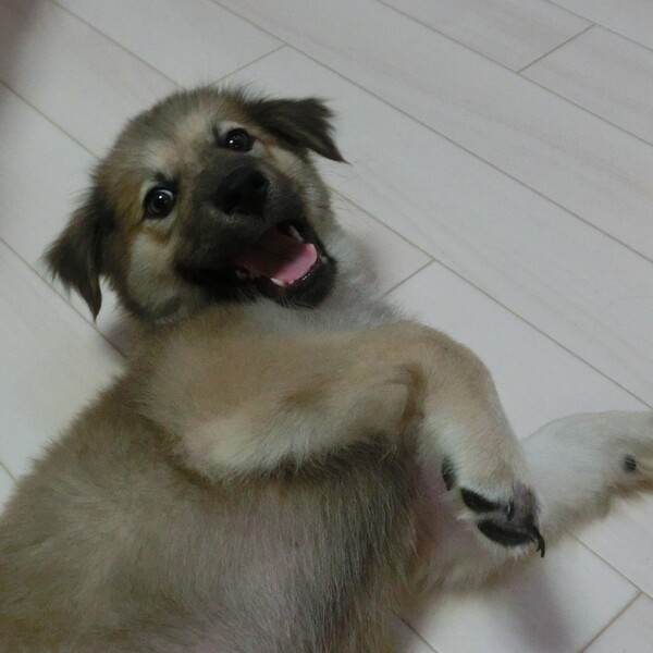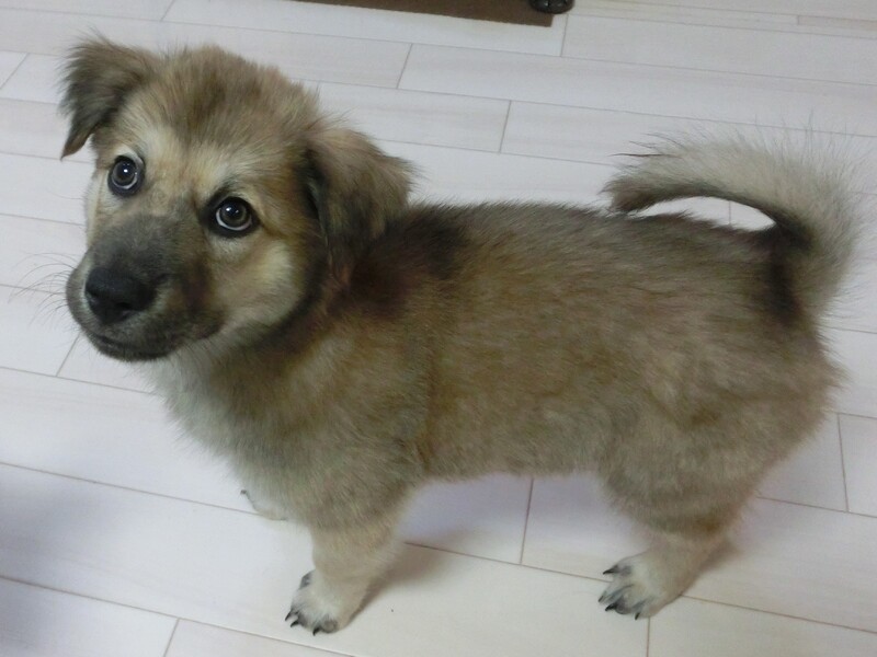 | 特徴(性格など) | 仮に「ダイゴ君」と呼んでいます。 ふわふわの毛並みで甘えん坊大きな体でお膝に乗ってきます。 他の兄妹が見えなくなるとキュ~ンとないて呼んだりもする寂しがり屋さんです。 子犬らしく走ってじゃれて、噛んでは遊びまわっています。 現在5キロを越え、すくすく育っています。 パパもママもわからないので、将来どのような大きさになるかわかりませんが、 この手の大きさ、この育ち具合から、20キロ前後はいくかも…と想像しています。 |