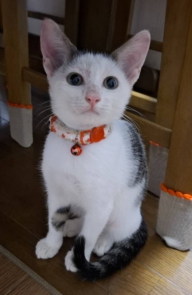 | 特徴(性格など) | 綺麗な牛柄です 子猫らしい元気さとりもどしてます 兄弟で捨てられたショックも乗り越えて います 先に保護した子はすでに譲渡済です |
