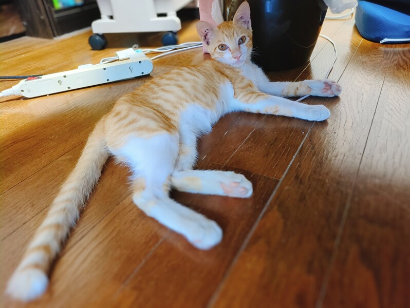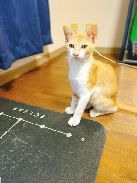| 特徴(性格など) | 茶トラのしっぽの長い男の子です。大人しくなでなでが好きです。おっとりした感じの子です。 | ||