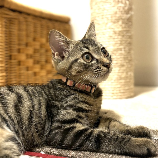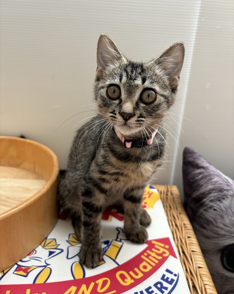 | 特徴(性格など) | 〈仮名〉マドレーヌ 〈性別〉メス 〈年齢〉 推定3ヶ月(2024/5月生まれ) 〈毛色〉キジトラ 〈体重〉1.6キロ(2024/9/3) 〈状態〉避妊手術済み、3種ワクチン2回済み、エイズ白血病検査どちらも陰性、寄生虫駆虫(ネクスガードキャットコンボ) 、トイレしつけ済み 〈性格〉 こぼれ落ちそうな大きなお目めにくっきりキジトラ柄が素敵な『マドレーヌちゃん』です。 ちっちゃくて華奢な体ながら元気で活発、飛んだり跳ねたり遊ぶの大好き! なによりとっても甘えんぼさんです♪ くうんくうんと甘え声を出してくっついて離れません。 ごはんはドライフードにちゅーるをトッピング、おやつはヤギミルクが大好きです。 |