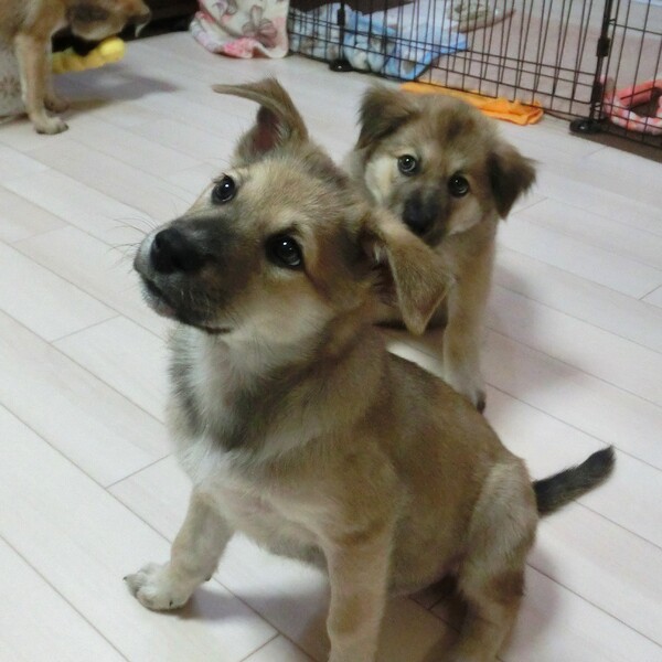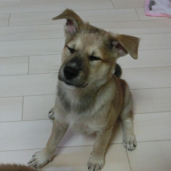 | 特徴(性格など) | 仮に「すばるちゃん」と呼んでいます。 とっても甘えん坊の可愛い女の子です。お気に入りのおもちゃを咥えてお膝にぴょこんとのってきてくれます。人の様子をしっかりと見ている子ですので頭のいい子だと思っています。 子犬らしく走ってじゃれて、噛んでは遊びまわっています。 現在5キロを越え、すくすく育っています。 パパもママもわからないので、将来どのような大きさになるかわかりませんが、 この手の大きさ、この育ち具合から、20キロ前後はいくかも…と想像しています。 |