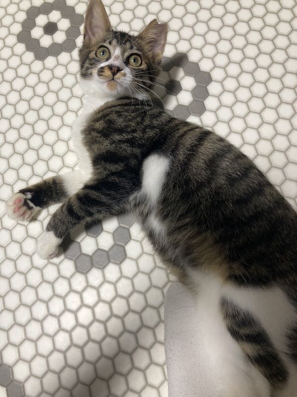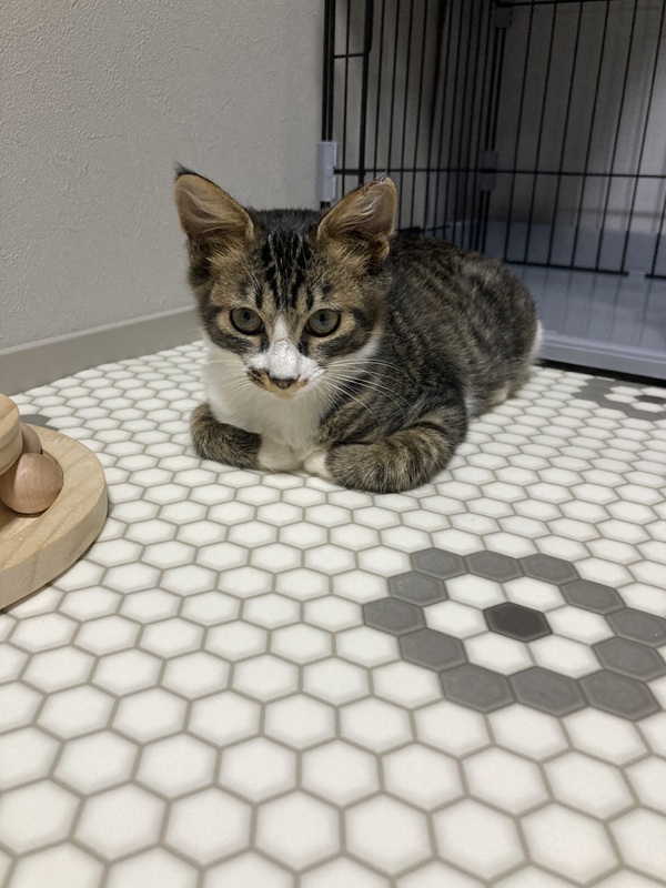 | 特徴(性格など) | キジシロの男の子 保護当日からゴロゴロ男子です。 甘えたさんです。 少し毛が長めです。 |
