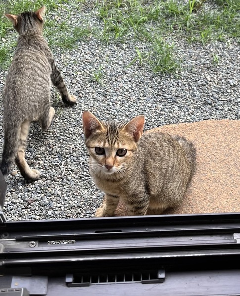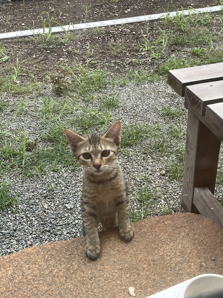 | 特徴(性格など) | 人馴れはしていませんが、今チュールをあげたりして距離を縮められるよう、餌やりさんが頑張っています。お顔はとても可愛い子達です。3匹とも同じようなキジトラで色の濃さで少し見分けが付くかな?というくらいです。病院には連れて行ってませんが、フードをよく食べ、健康的な体つきです。 | ||