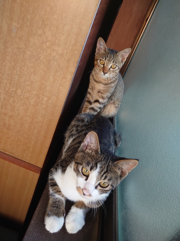 | 特徴(性格など) | ギジトラの茶と、黒メス2匹オス2匹おおらかな優しい性格メスは、ビビり。 | ||