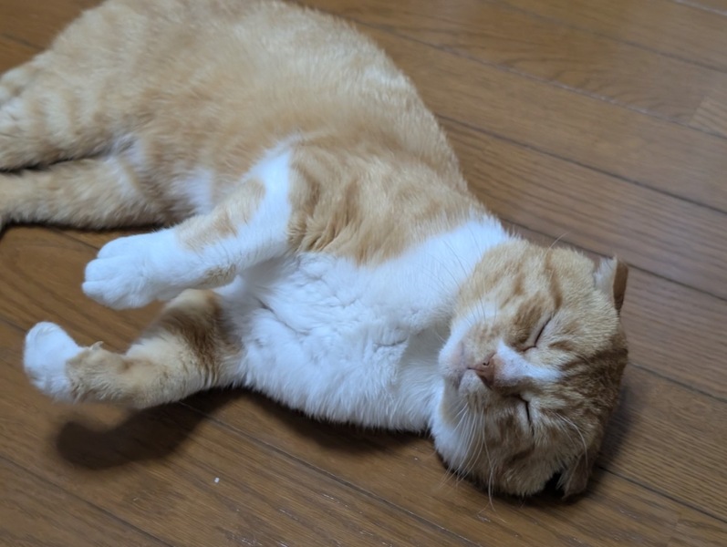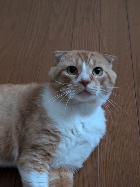 | 特徴(性格など) | 茶白のタレ耳の人懐っこい男の子です。 捕獲時より頭を撫でられたら、すぐ、コテンっと横になってお腹をみせてくつろいで甘えてくれます。 グルグル、フミフミの甘えたさんです。 |