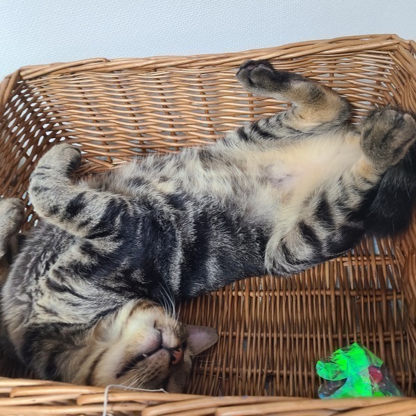 | 特徴(性格など) | 人見知りはすこーししますが、すぐなれます!家猫より家猫で人間大好き。呼んだらすぐ来る食いしん坊です。甘えん坊で独占欲強め...外にもでたがらず、多分飼い猫だったのでしょう。とにかく飼いやすい可愛い大きな男の子です。 | ||
