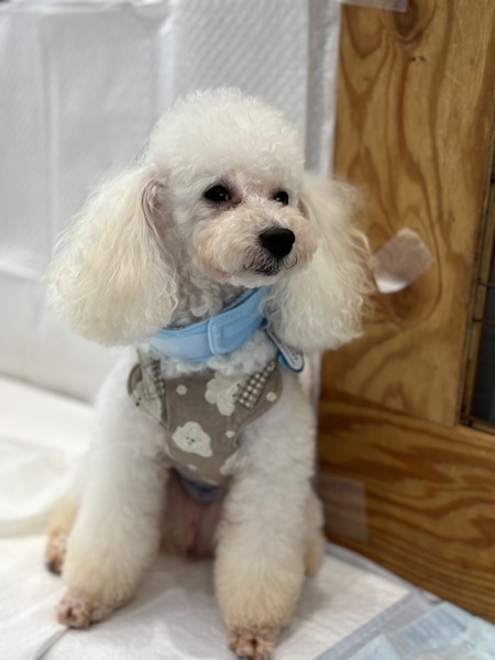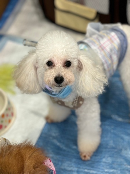 | 特徴(性格など) | 性別 オス 犬種 トイプードル 毛色 ホワイト 年齢 2017年5月20日生まれ 体重 2.8キロ 性格 とても臆病で慎重 トイレ シート認識無し。足上げおしっこのためマナーパットで対応しています。 散歩 よく歩くようになりました。匂いを嗅ぐのが好きで、ゆっくり歩きます。お外で排泄もします。 日常の様子 慣れた人とはフレンドリーに穏やかに過ごせますが、慣れない人には抱っこされると緊張して体を強張らせています 他犬に迫られると目を背けてかわして卒なく対応しています。声は小さいですが、物音や来訪者にたいして吠えています。 お手入れ 毎月のトリミング・毎日のブラッシング・歯磨き・耳掃除・涙やけケアなど ※トリミング犬種なので、必ず毎月1回サロンでトリミングをして可愛く清潔にして頂ける方、それだけの経済的余裕がある方を希望します フード ロイヤルカナン 健康状態 フィラリア 陰性(-) ワクチン 5種混合接種済み マイクロチップ 装着済み 避妊・去勢 去勢手術済み その他 触診・聴診・血液検査・検便、異常なし 駆虫薬投与・ノミダニ駆除済み・スケーリング済み ★特記 声帯切除されている為将来気管の病気になる可能性があります。 就寝時は一緒に寝てくれる里親様を希望します。 |