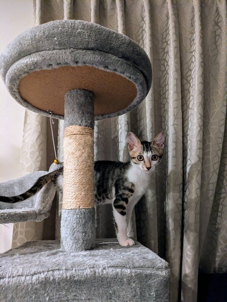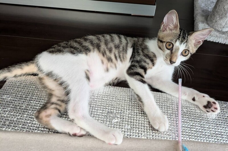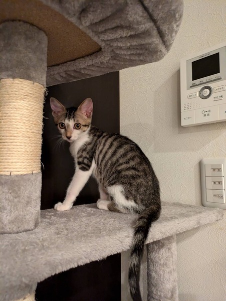 | 里親募集する理由 | ■保護した時の様子 自宅の花壇から鳴き声が聞こえて、花をかき分けたら弱った子猫が1匹うずくまっていました。周りに母猫や姉妹は見当たらず保護しました。 風邪&衰弱で病院に通い、1ヶ月はかかるかもと言われていましたが脅威の回復をみせ10日程で元気になりました! 保護した時は声が出ませんでしたが、少しハスキーながらも声が出るようになりました。 現在、猫を3匹飼っており4匹は厳しいため里親を募集いたします。 |