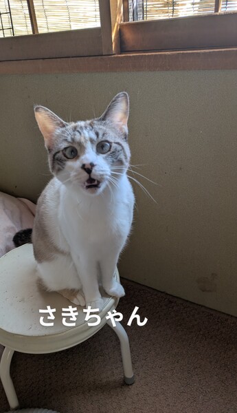 | 特徴(性格など) | とても大人しめ女の子さきちゃん。この頃とっても甘えん坊になり お膝に来てなでなでを要求して来ます? シャムMIXですが 色がきれいですよ |