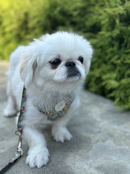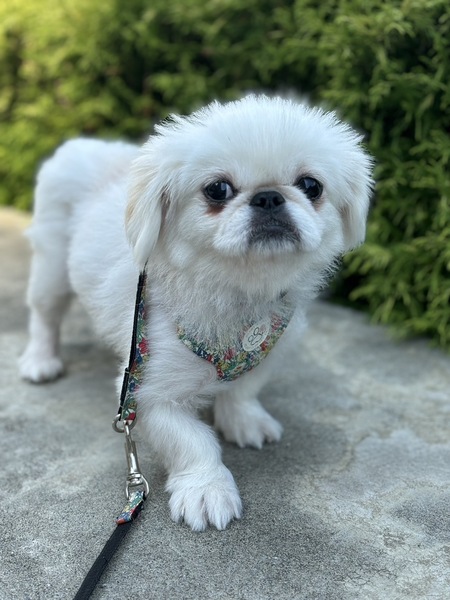 | 特徴(性格など) | 性別:メス 犬種:ペキニーズ 毛色:白 年齢: 2022年10月24日生まれ 体重: 3.7kg 性格:臆病。人懐こい。他犬に対しては強い。 トイレ: トレーニング中 散歩: まだ開始していません 日常の様子:人に対してとても甘えん坊で擦り寄ってきます。ひとりでオモチャ遊びもします。ちょっとしてことで驚いて隅っこに隠れることがあります。フリーで過ごしていますが、留守番や就寝はゲージでしています。他犬に対しては強引な態度に出ることがあります。 お手入れ:毎月のトリミング・毎日のブラッシング・歯磨き・耳掃除・涙やけケアなど ※トリミング犬種ではないので、サマーカットなど短く刈り上げることはしないで可愛く清潔にしてあげてください。 フード: ロイヤルカナンとココグルメや手作りのトッピング 健康状態 フィラリア:陰性 ワクチン:接種済み マイクロチップ:装着済み 避妊・去勢:手術済み その他:触診・聴診・血液検査・検便、異常なし、駆虫薬投与・ノミダニ駆除済み・スケーリング済み |