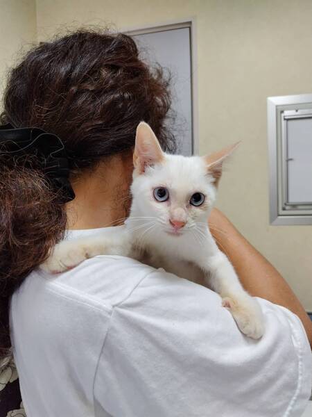 | 特徴(性格など) | 白 ブルーアイ 最初だけ人見知り 慣れれば抱っこ可 |