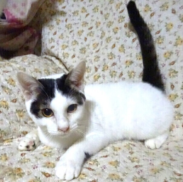 | 特徴(性格など) | 仮名: たまみちゃん (メス) 毛色: 白黒、尻尾は長く、黒 性格: 保護時は奥に引きこもっていましたが威嚇はなく、攻撃性もありませんでしたから、怖がりの面はあっても超ビビりではないと思います。 順応性は高いほうで、今はケージに近づくだけで出てきてスリスリしたり、手にタックルしたり、人と遊ぼうとしますし、甘えます。 ケージから出てくると抱っこを要求してべったりです。 膝の上一番乗り。 他猫とも問題なく付き合えています。 猫社会の学習は出来ていると思います。 じゃらしでも遊びます。 抱っこして甘えさせてくださるご家庭を希望しています。お届けは千葉県内で車で1時間圏内でお願いします。 検便済 駆虫済 3種混合ワクチン済 避妊手術済 猫エイズ・白血病ウィルス検査は共に陰性です |