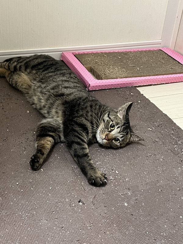 | 特徴(性格など) | サバトラの男の子です。 性格は、少しやんちゃですかね。 何にでも突進して来ます笑 |