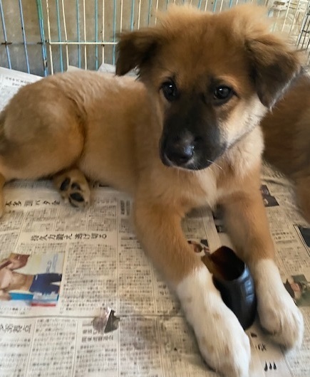 | 特徴(性格など) | 犬種:ミックス 性格: 生後3週間くらいで保護したので、人には慣れてます。私の姿を見ると飛んできます。とても可愛いです。甘えん坊です、人間の話すことをよく理解できます |