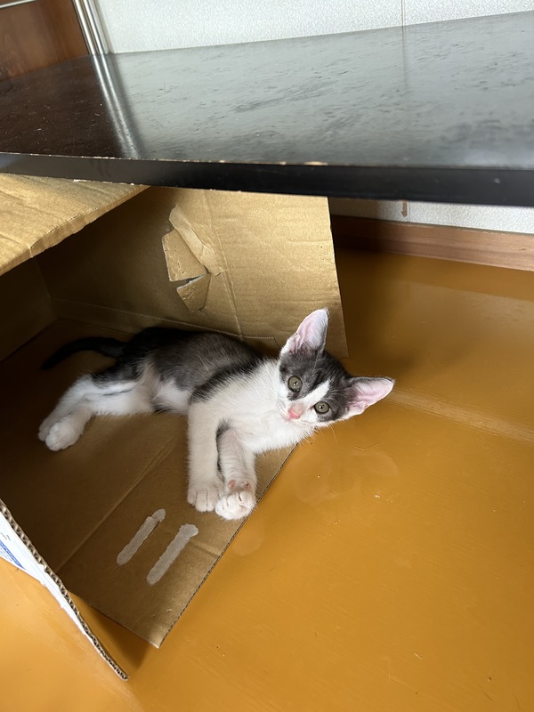 | 里親募集する理由 | 現在家猫が5匹います。一週間前、家の前に捨てらている5匹の兄弟猫を保護しましたが、家で飼う場所がないため誰か良い人に貰ってもらい、幸せになって欲しく募集しました |