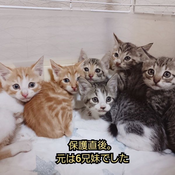 | 里親募集する理由 | 【2匹ペアで家族に迎え入れて下さる方を探しています】 福岡県筑豊地区の住宅街にて、野良猫のTNR(Trap=捕獲・Neauter=不妊手術・Return=元の場所に戻す)活動中に保護した子猫です。 母猫は避妊手術をおこないリターンしました。 まだ幼い子猫で、カラスや野生動物も多い場所のためこれ以上危険な目に遭わせたくなく保護して里親様を探すことに。 過酷な環境を生き抜いてきたこの子たちに安心して暮らせるあたたかいお家を見つけてあげたいです! 福岡県外も対応可能です! |