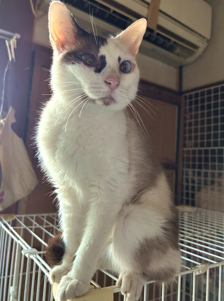 | 里親募集する理由 | 多頭飼育困難で一人暮らしで病気を患ってしまい長期入院になってしまった近隣の市のお宅からのレスキューです。 85頭!という大にゃんずうではありますが愛情はたっぷり受けて掃除もされていたため健康でとてもなつっこい子です。 ノミダニ駆虫済。 |