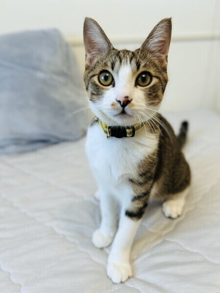 | 特徴(性格など) | 【仮名】ひなたくん 【性格】人がとーっても大好きなひなたくん☆ 人を見つけたらすぐさま足元に擦り寄って、 ストーカーしちゃう猫さんです! 抱っこも好きなので、 たくさんスキンシップしたい方は心ゆくまで満たしてくれます。 おもちゃ遊びも大好きで、どんなおもちゃにも食いつきます。 他の猫とは、付かず離れずの程よい距離で接するので、 お互いのペースで暮らすことができます! とにかく甘えん坊なので、寂しくないように妹の葵ちゃんと一緒、 もしくは先住猫さんがいるお家を希望します♪ ※1ピキ譲渡不可 |
