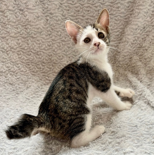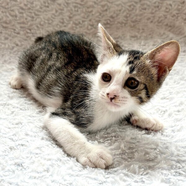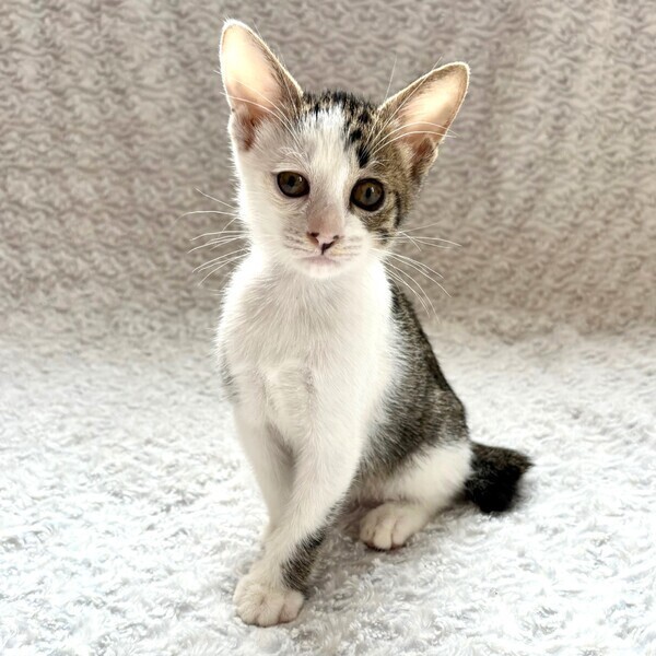 | 特徴(性格など) | 【仮名】ピエニくん 【性格】いつも困ったお顔してるピエニくん☆ 困ってないのに困った顔。。。(笑) ちっちゃい体でギザギザシッポをブルンブルン振り回しながら お兄ちゃん達と毎日追いかけっこしてます! 遊びの中で猫社会を学んでいますので 同世代のお友達とのお迎えをお願い致します♪ ※1ピキ譲渡不可 |