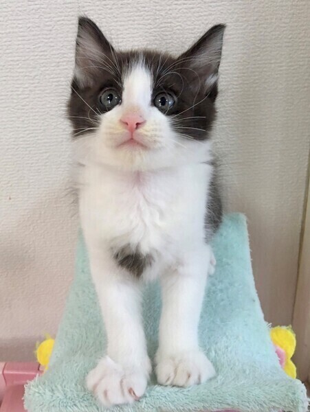 | 特徴(性格など) | 【仮名】こはくくん 【性格】完璧シンメトリーのこはくくん♪ これがハチワレと断言します(笑) 胸にハートマークがあるんですよ! ミルクから乳母プロ預かりさんが 愛情たっぷりに育て上げてくれたので 当然のように人馴れバッチリです! このコの9割は優しさで出来てます( ゚Д゚) まるでバファリンのようなにゃんこ♪ 兄妹を気遣い優しさを振りまく お兄ちゃん気質の性格よきコですね♪ よく食べよく遊びよく寝て スクスク成長中の元気印にゃんこです♪ まだまだチビッコなので お留守番は少なめの方限定です! ぜひ兄妹のこはなちゃくんやこまちちゃんと 一緒のお迎えをお願い致します♪ ※1ピキ譲渡不可 |