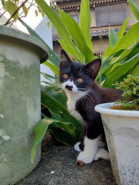 | 特徴(性格など) | 24年12月に不妊去勢手術を行ったため、片耳カットをしています。 生後約7ヶ月の白黒 尻尾が長くて真っ直ぐです。 呼ばなくても人に付いてくる子。 2匹の写真で眉間まで白い子は引渡し済みです。 |