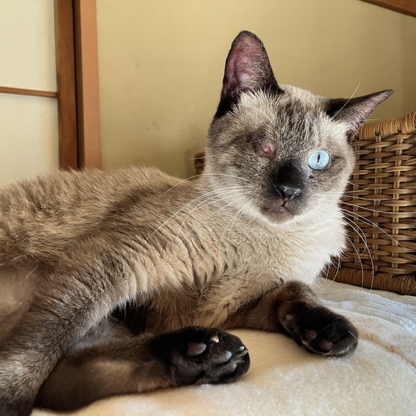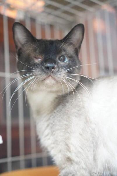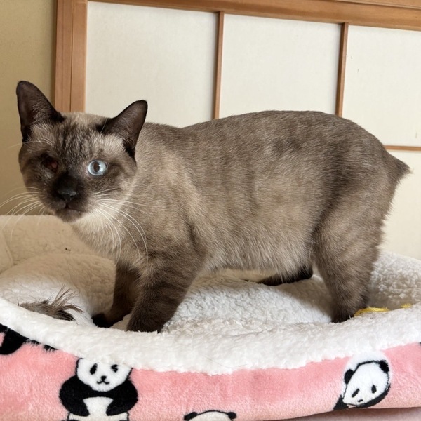 | 特徴(性格など) | ◆ひょうどうくん 片目の人慣れした黒シャム風男子 ○栃木の動物愛護センターから引き出しました。 ○推定7歳くらい(2024年9月時点)の黒シャム風の男の子です。体重は4.4kg(2024年7月27日時点)です。 ○保護当時、大腿骨を骨折していたため手術をしています。その際にしっぽも懐死っぽく金属のようになっていたため断尾しました。 ◯右目欠損(おそらく生まれつき)しています。 ◯人慣れしていてナデナデさせてくれます。 ◯人とはつかず離れずいい距離感な子です。 ★ワクチン1回済み、不妊手術済み。 ★猫エイズ、猫白血病ともに陰性。 ★右目欠損していますが、日常生活には支障ありません。 ☆単身のかたはご相談ください。 ★★お見合いを設定することも可能です。まずはお申込みください★★ |